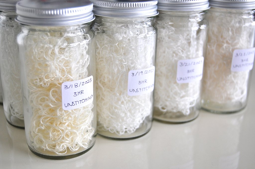 My multidisciplinary practice explores the intersection of digital art and embroidery, through processes rooted in traditional craft. I’m interested in the dichotomy between fast-paced digital technologies and the time-consuming practices of cross-stitching, knitting, and other needlework. Through my laborious approach to making art, I mirror society’s obsession with technology and its ability to both connect and disconnect. My project Becoming a Pixel will be a series of cross-stitched self-portraits that visually demonstrate how digital technologies are impacting the way we view ourselves and engage in the world.