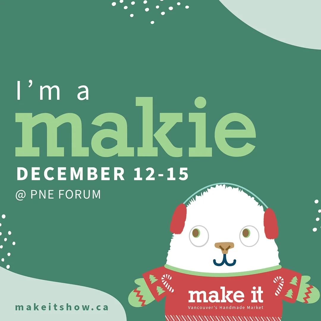 I’m so excited to be a Makie at Make It Vancouver happening Dec 12-15 at the PNE Forum! The show will feature 250 amazing local brands and makers. This is an awesome spot to get all your holiday shopping done while supporting creative entrepreneurs. There will also be food trucks, a lively festive atmosphere, and holiday fun to be had by all. Make sure to follow @makeitshow for a chance to win prizes leading up to the show. Can’t wait to see you there! makeitshow.ca/vancouver