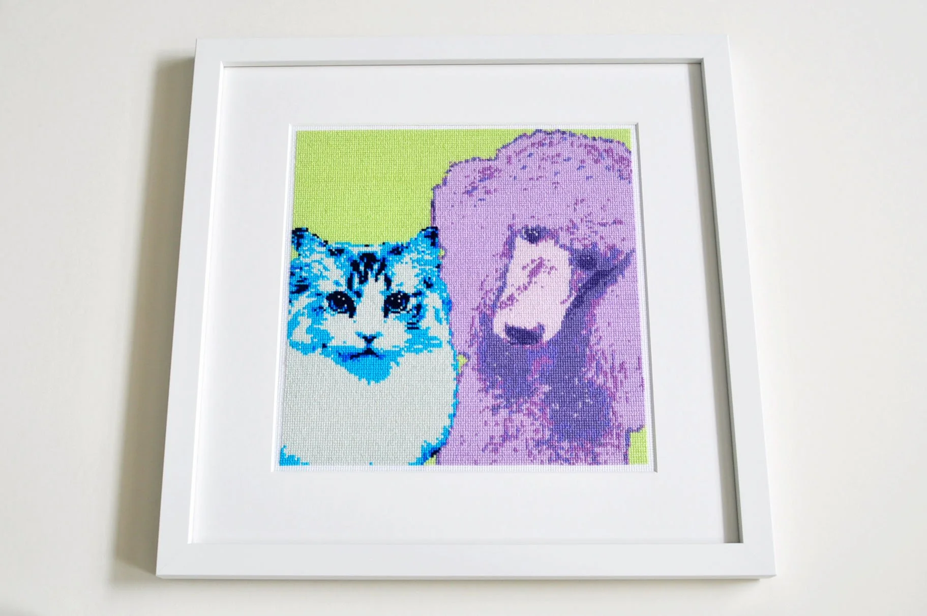 My books are currently open for customs, which are great options for unique artworks to gift yourself or your loved ones! I cross-stitch handmade portraits of pets, people, landscapes, abstracts (truly anything your heart desires), so reach out and we’ll discuss your idea. Don’t wait to the last minute, customs take at least 1-2 months from email/phone consultation, design, creation, and framing (depending on the size of the project). Below are examples of past custom works I’ve made for clients over the past several years.