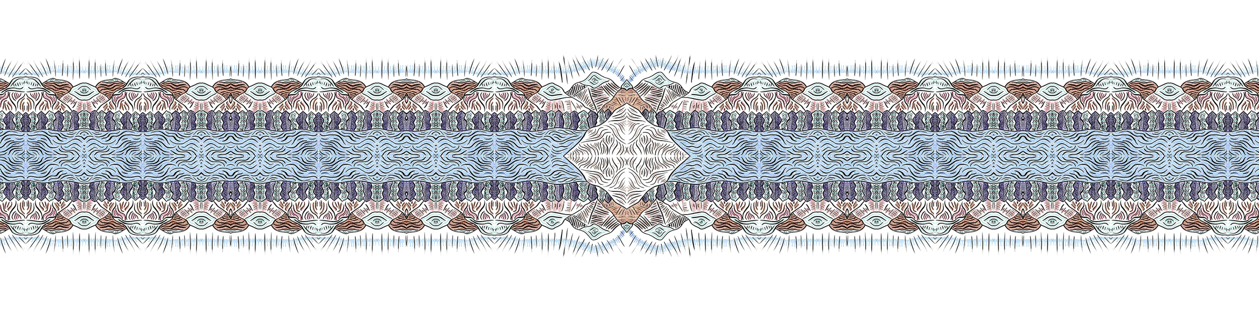 Staying within the medium of digital art, I've been pushing myself even further with this new approach. I am using the computer to make complex patterns from drawings, paintings, and photographs. There are multiple layers with varying degrees of transparency. Sometimes I cut and paste sections into random places on the image or I delete sections altogether. My process has become very collage based and I like to recycle old works into new ones. My practice continues to surprise me and it is in a constant state of transformation and development.