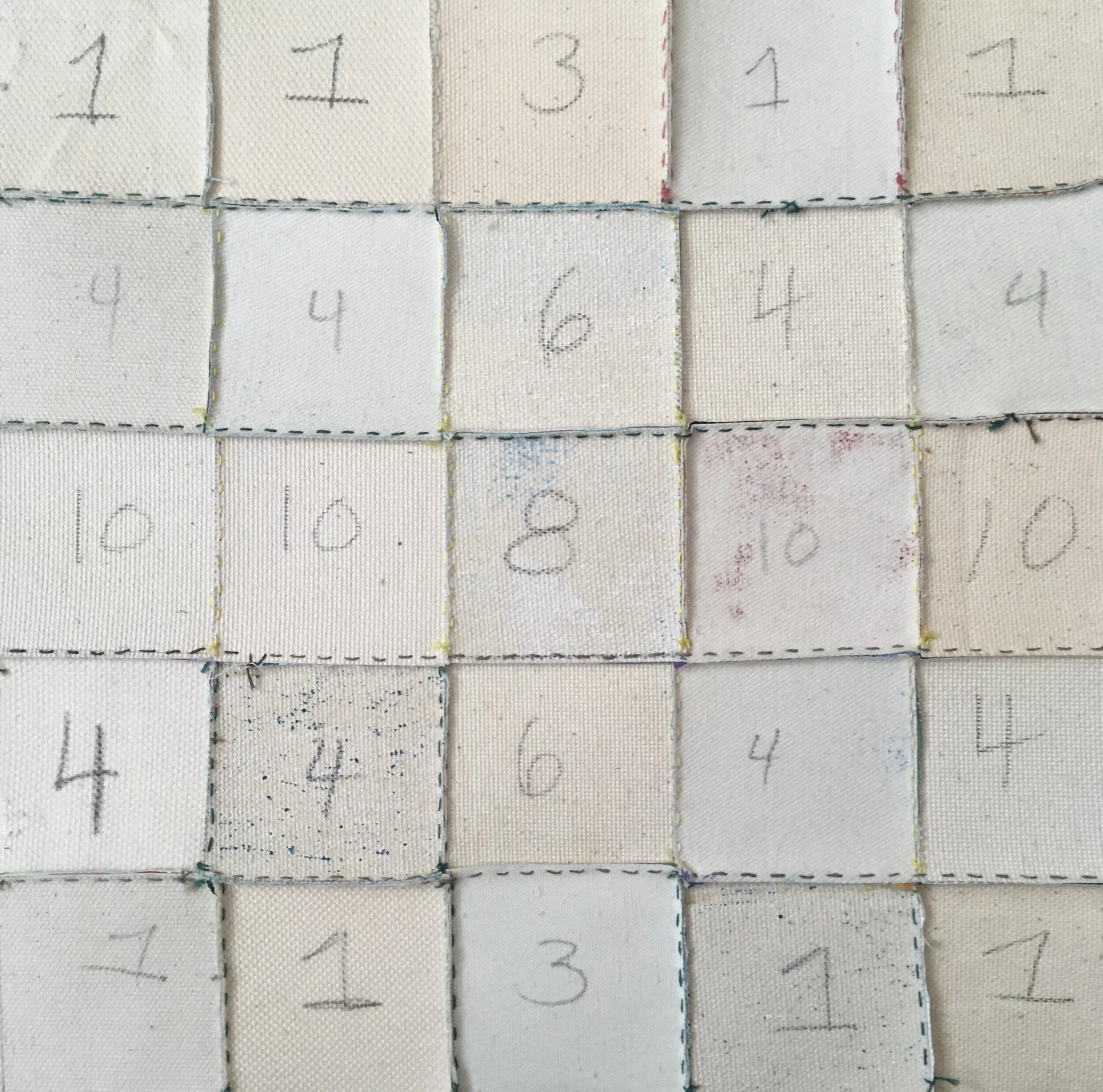 Vancouver Cityscape (Work in progress), 2022, mixed textiles, canvas, linen, cotton, yarn, thread⁠