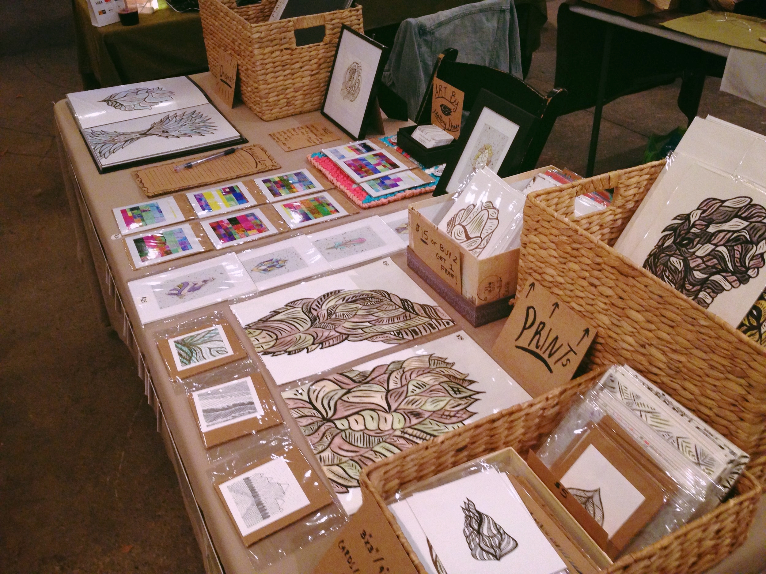 Last week I did my first market, the Maker Market at the Ellis Building (1024 Main Street). My inventory is fully stocked and I’m ready to keep getting my name and my art out there for people to see!