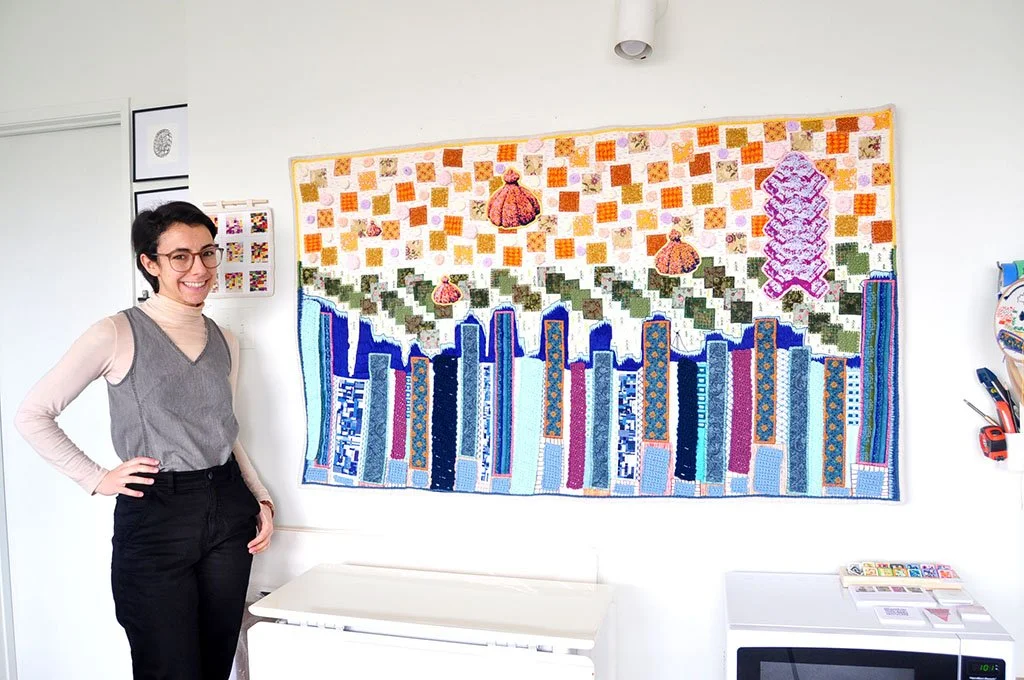 Vancouver Cityscape,⁠ 2023⁠, 35 x 58.5 inches,⁠ mixed textiles, yarn, embroidery thread,⁠ 315 hours of labour