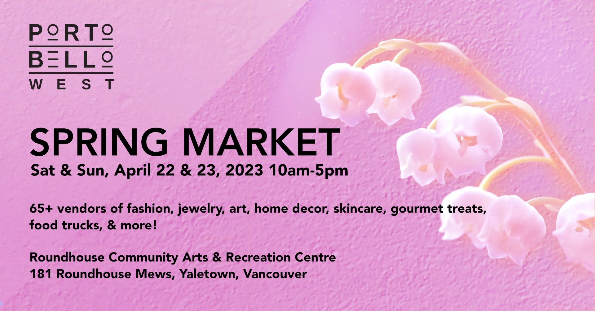 • April 22-23 - Portobello West Spring Market, 10-5pm, 181 Roundhouse Mews, Yaletown (Vancouver)