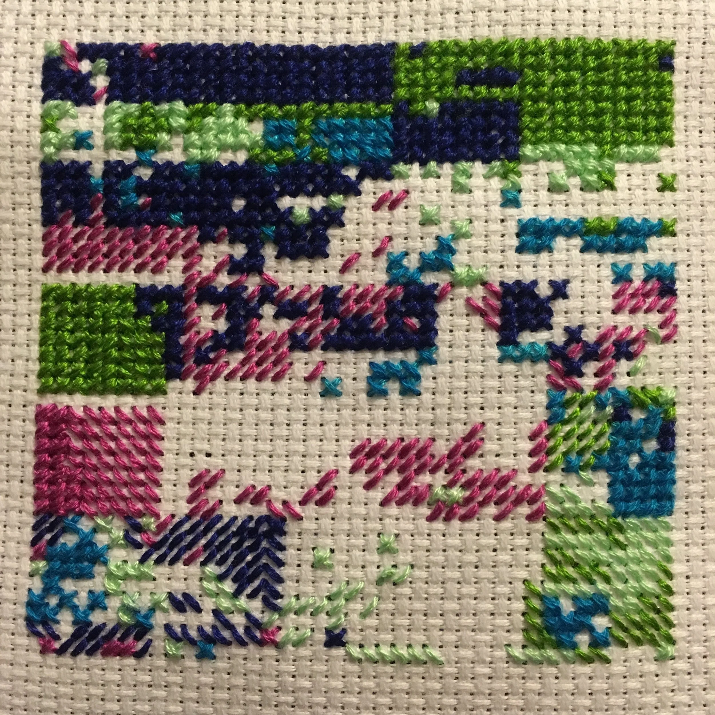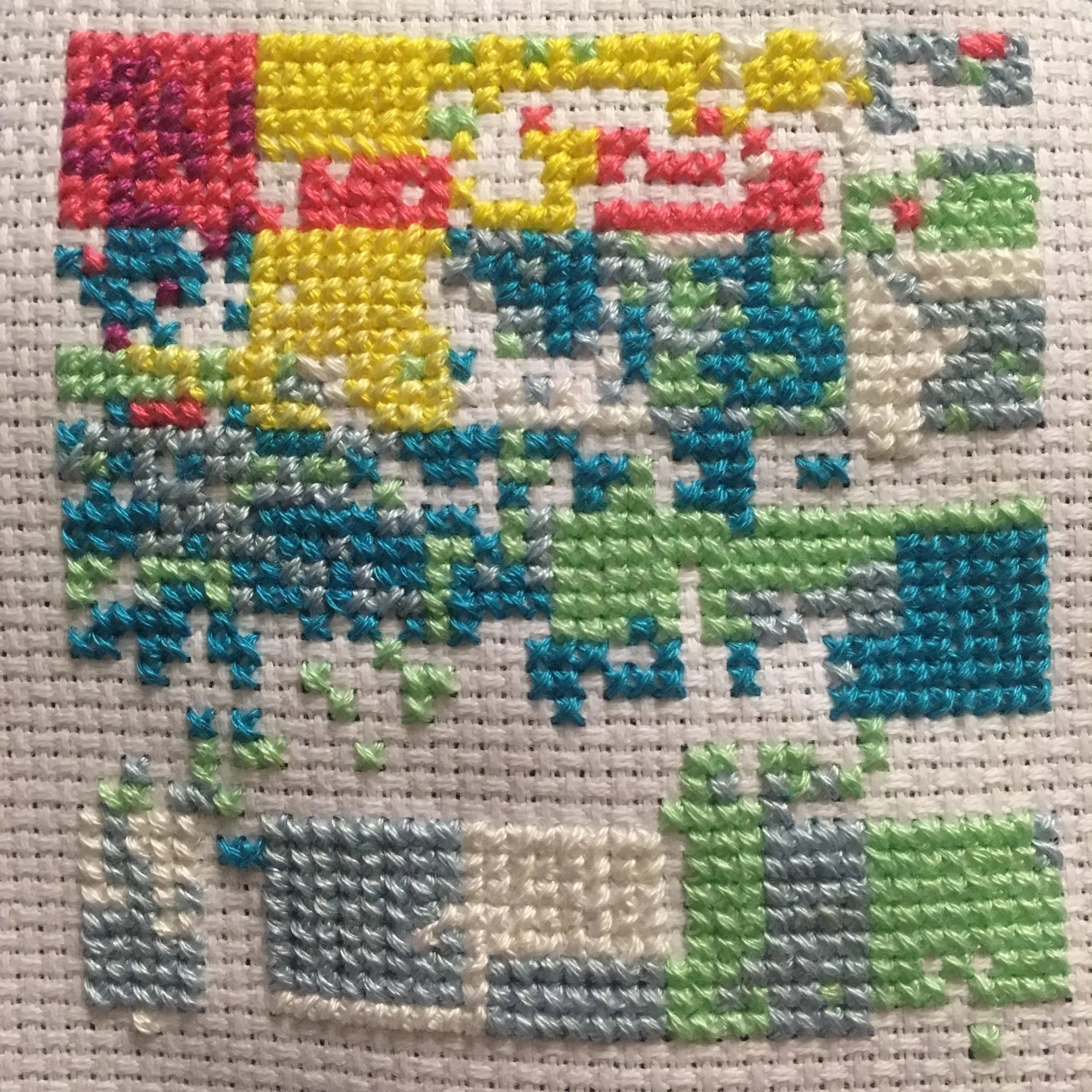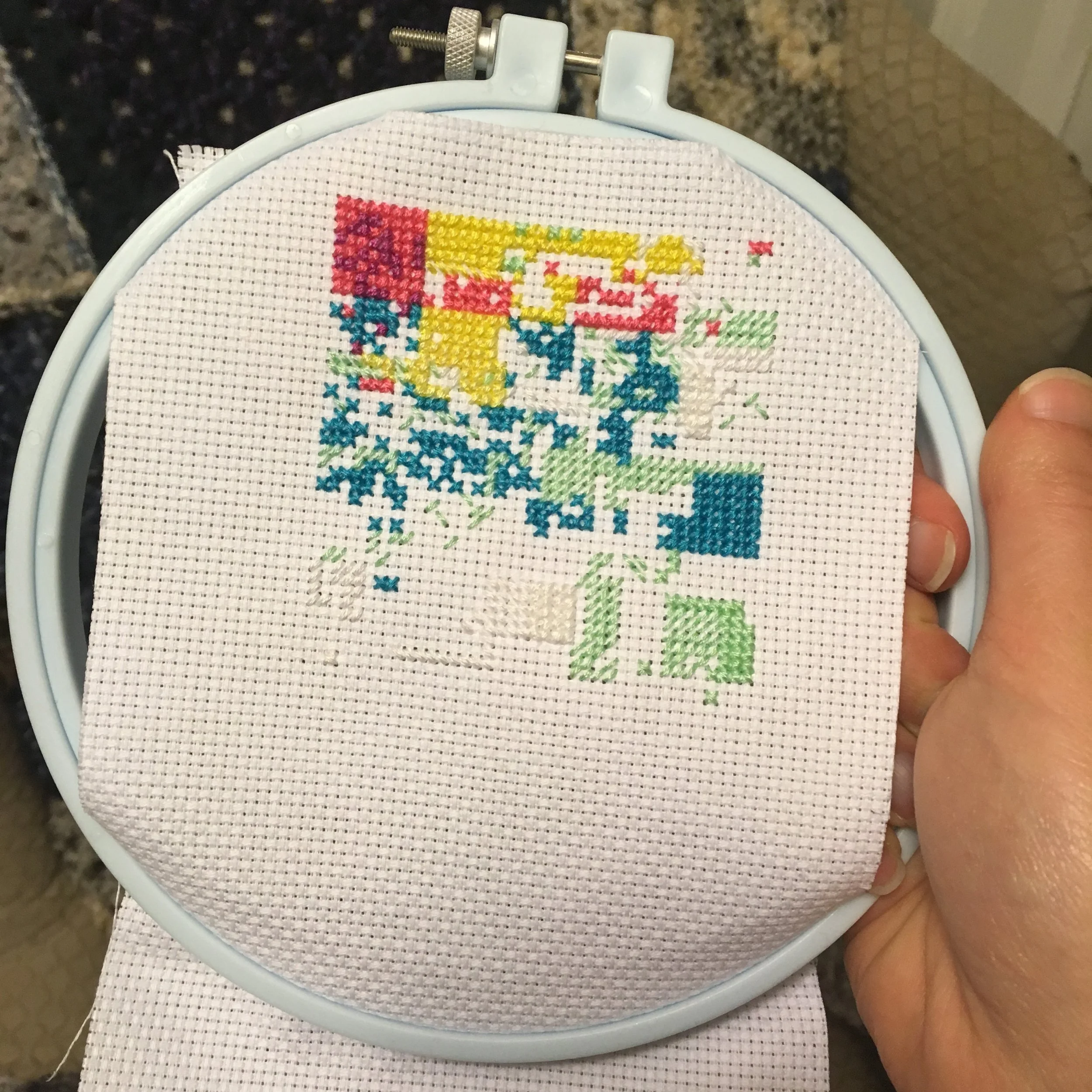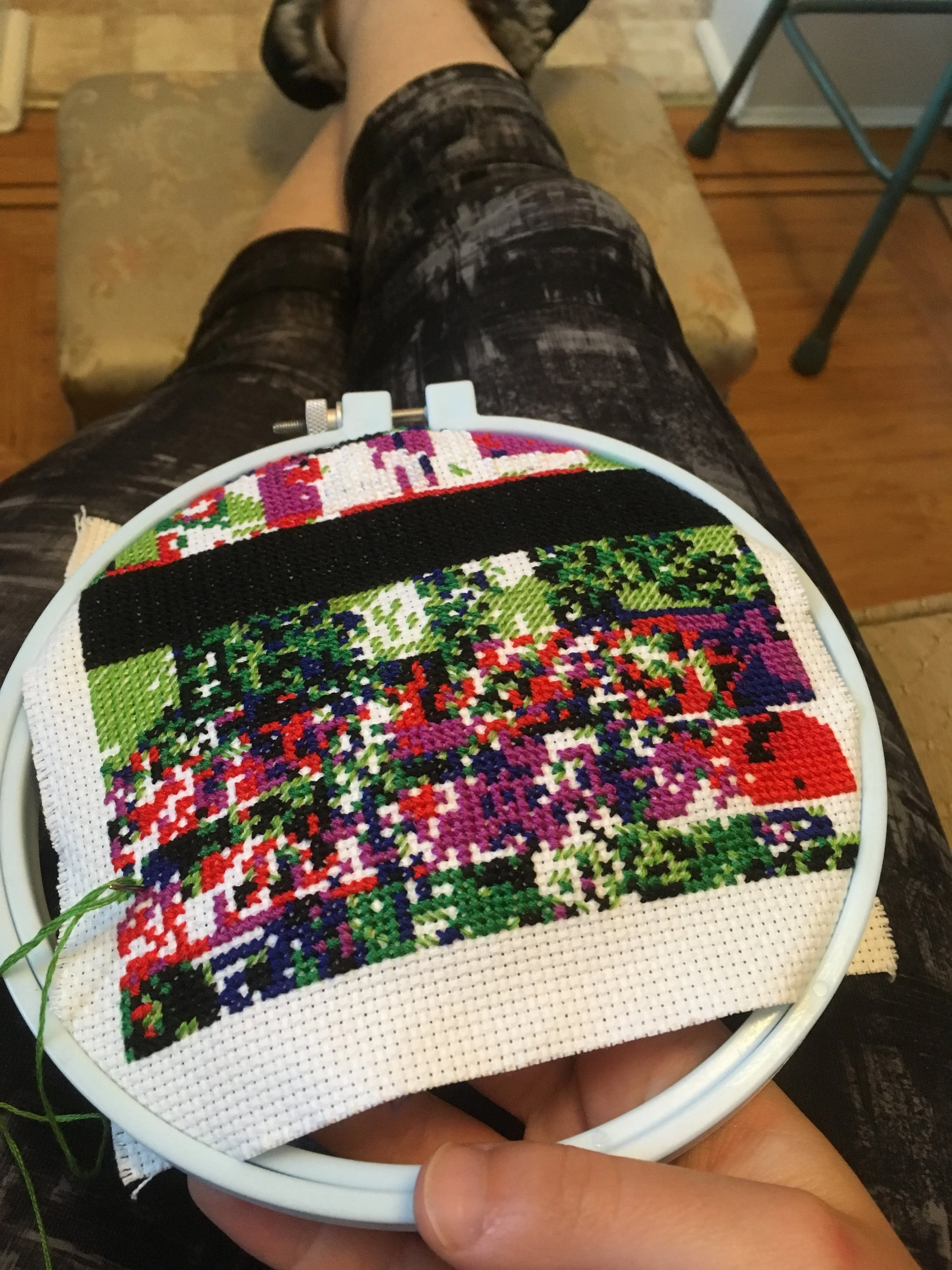 This past month I’ve been spending approximately 20-24 hours per week cross-stitching whenever possible. Why, you might ask? I was determined to finish Glitch Series 03. I’m happy to say that I did it! This series will be framed in 18x24” frames, each cross-stitch and glitch image is approx. 5.5 inches. I’m so happy to have another series under my belt, but I’m also looking forward to completing Glitch Series 04 which is currently in progress.