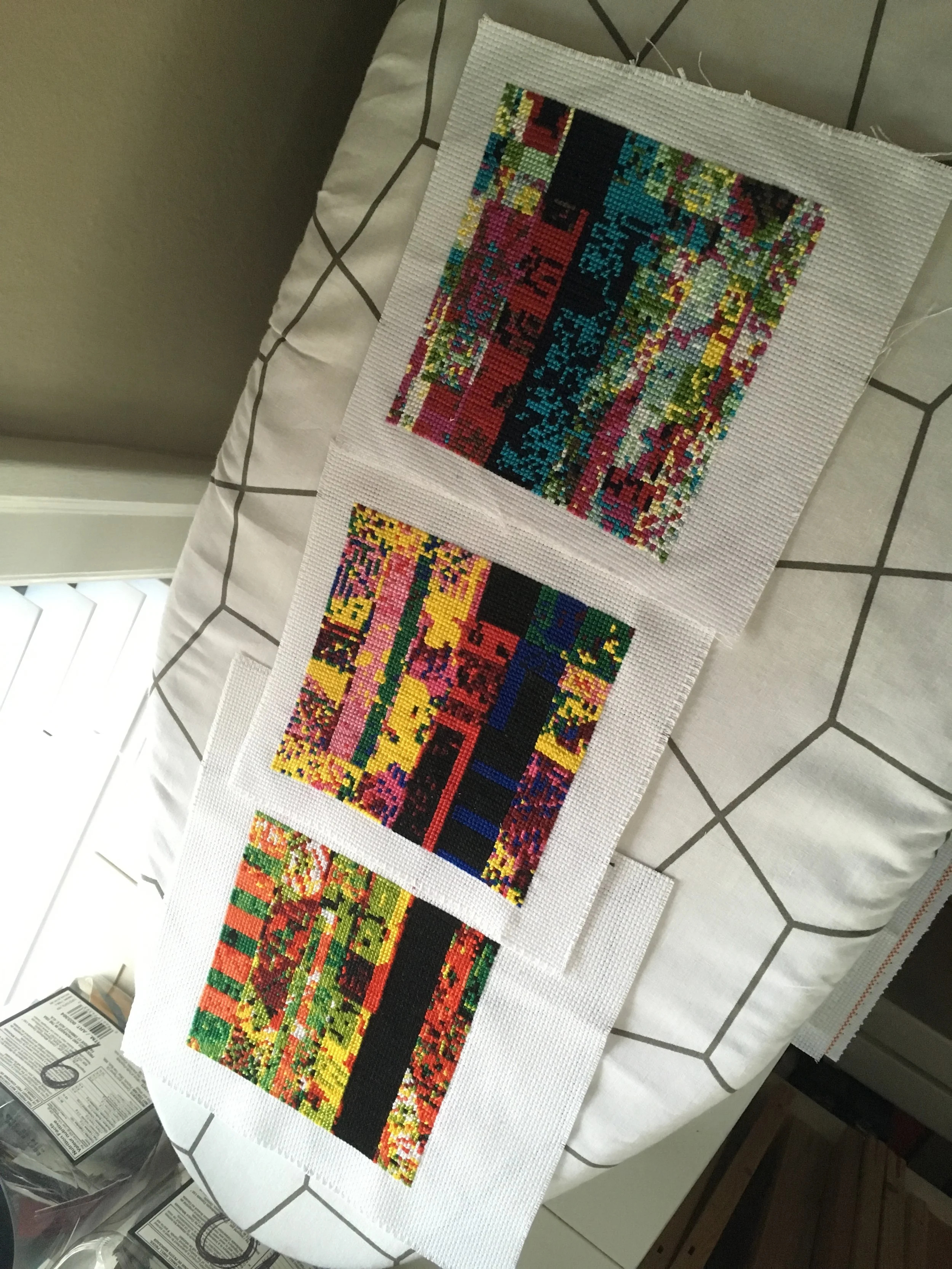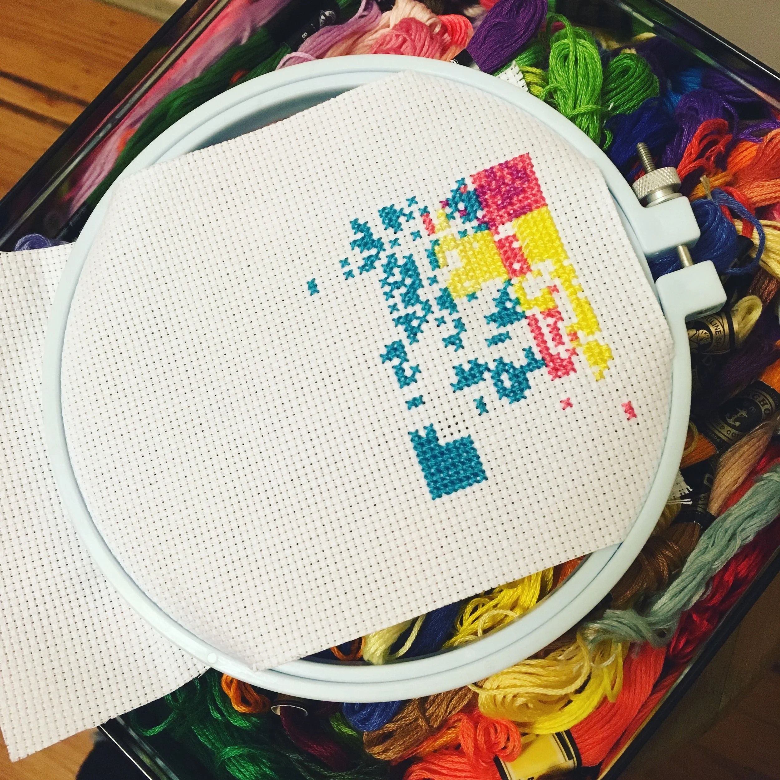 In preparation for the upcoming markets, I’ve been cross-stitching like crazy and framing some more works from my Glitch Series 02 & 04. Here are some photos of the process!