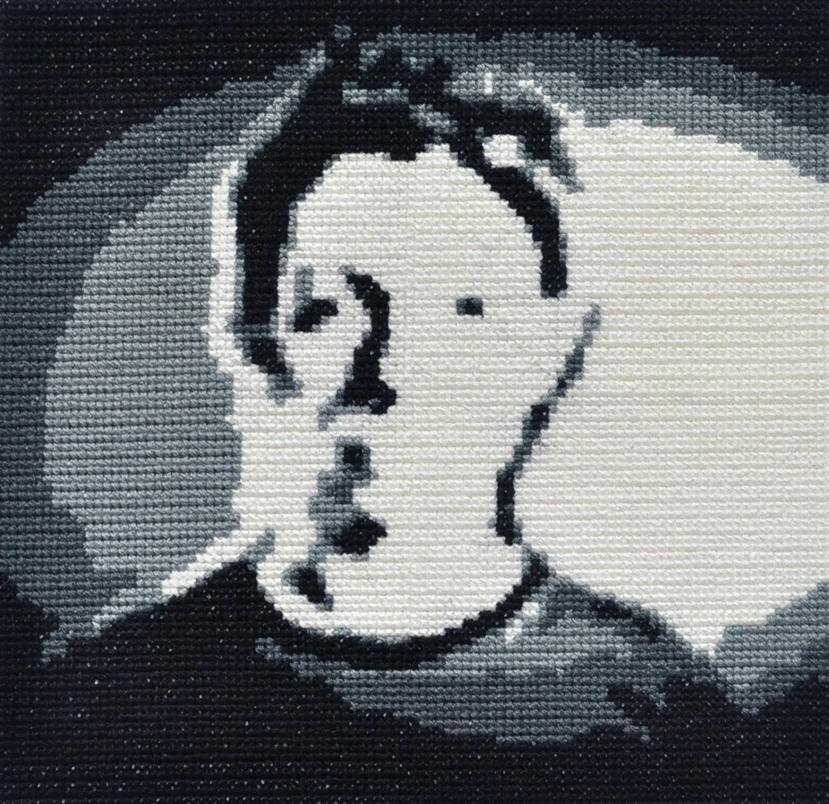 Becoming a Pixel - Portrait 2/5, 2022, embroidery floss, Aida cloth⁠, 7 x 7 inches, 35 hours of labour