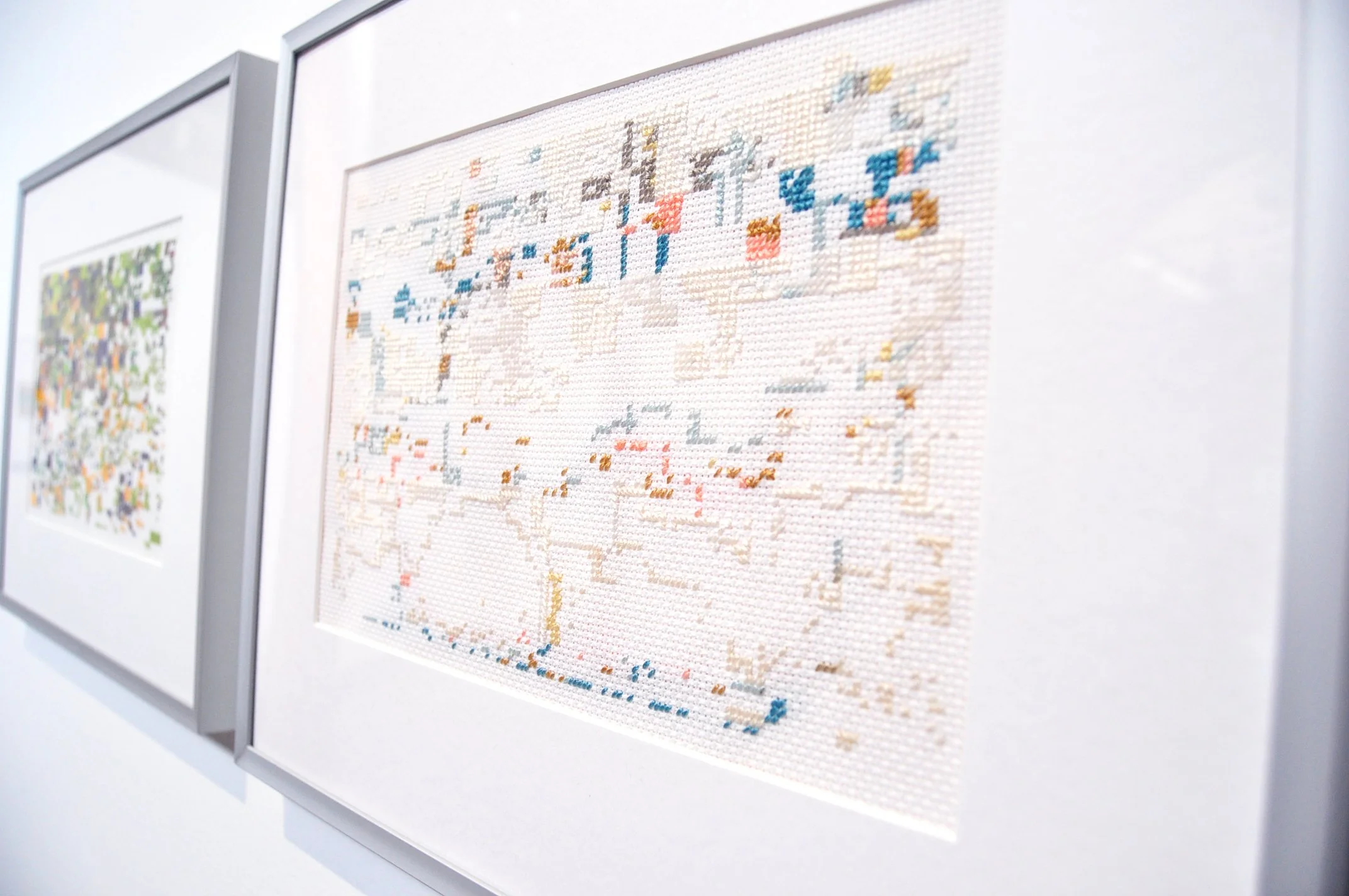Last month I showed a new series of black & white glitch inspired cross-stitch pieces as part of the First Saturday exhibition. I had all three works professionally framed at my go-to framer (Kent Picture Framing) and surprise, Kent (the owner), bought one of them!