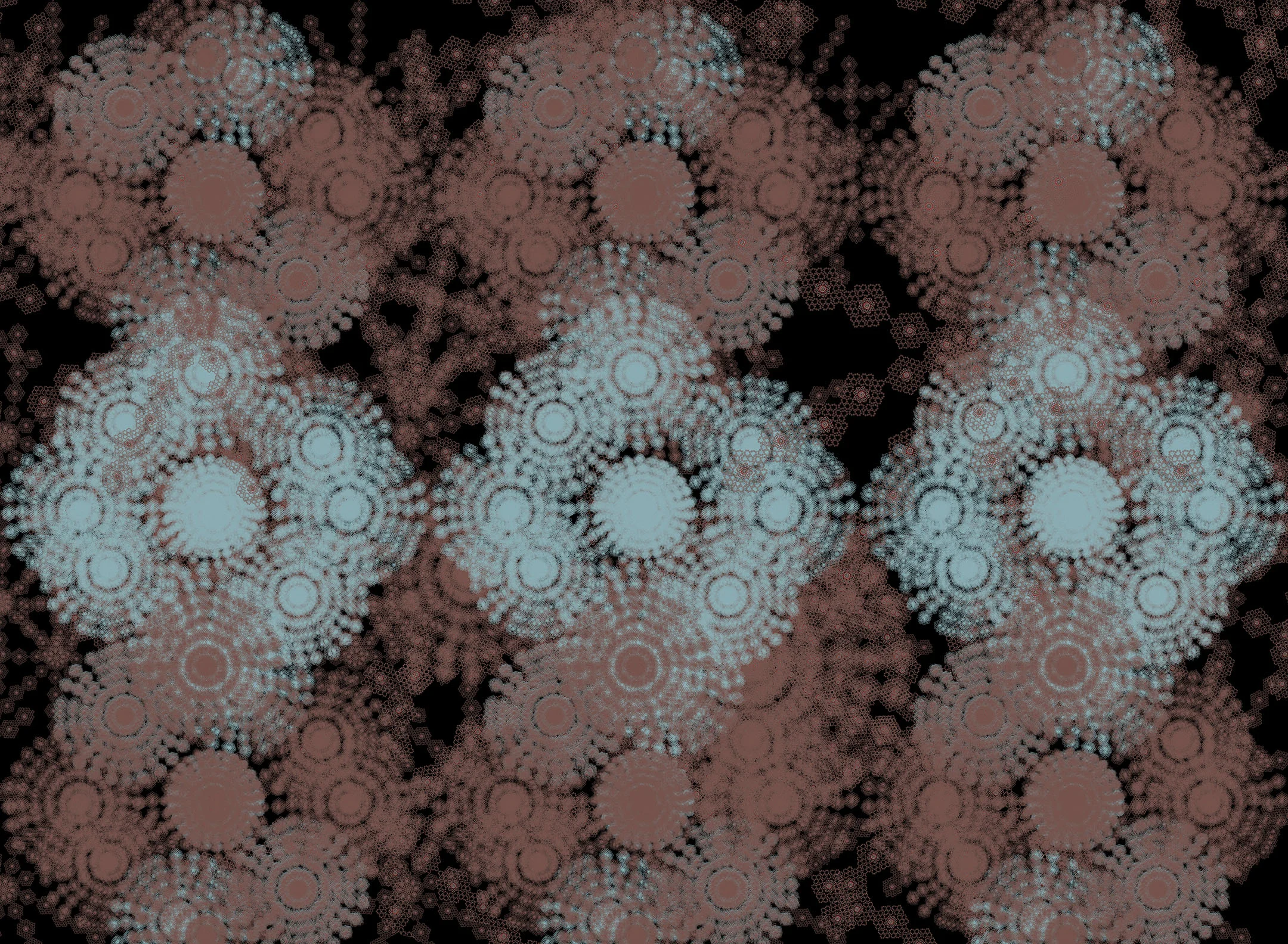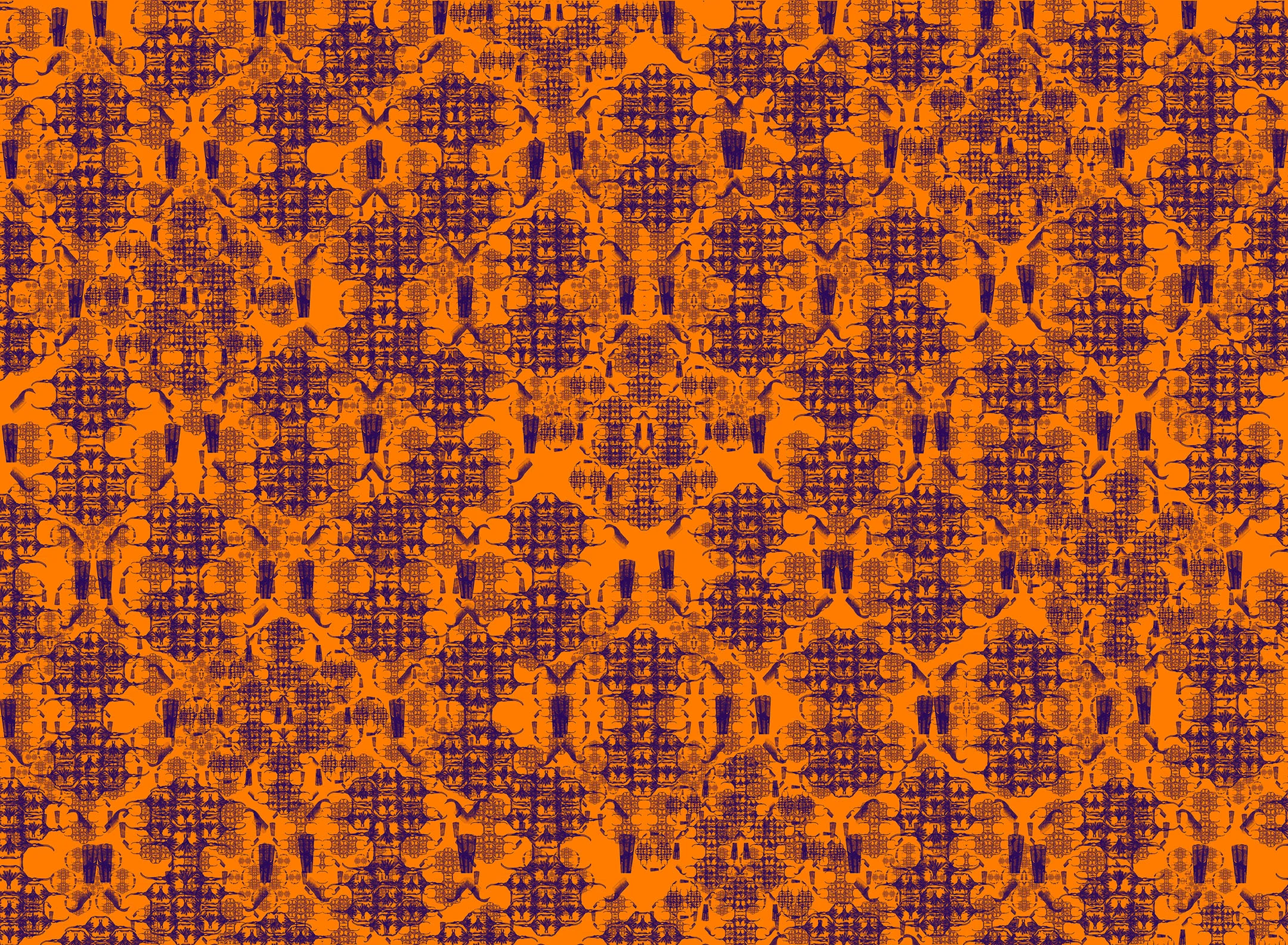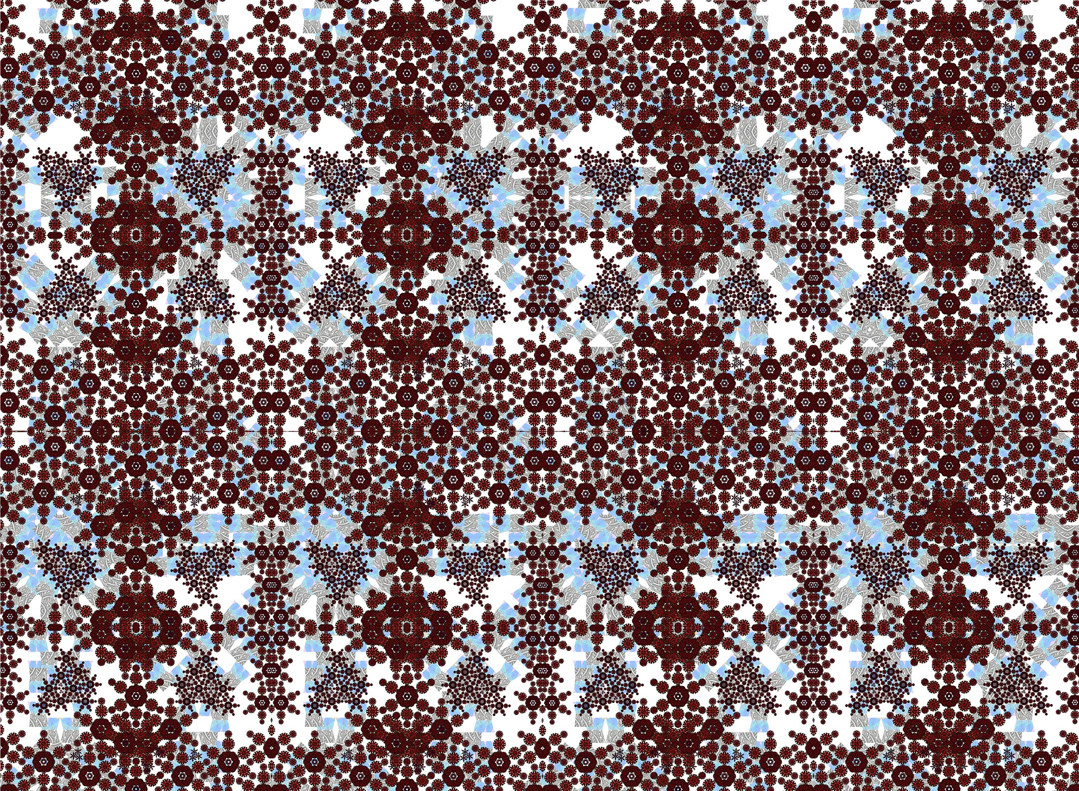 Staying within the medium of digital art, I've been pushing myself even further with this new approach. I am using the computer to make complex patterns from drawings, paintings, and photographs. There are multiple layers with varying degrees of transparency. Sometimes I cut and paste sections into random places on the image or I delete sections altogether. My process has become very collage based and I like to recycle old works into new ones. My practice continues to surprise me and it is in a constant state of transformation and development.
