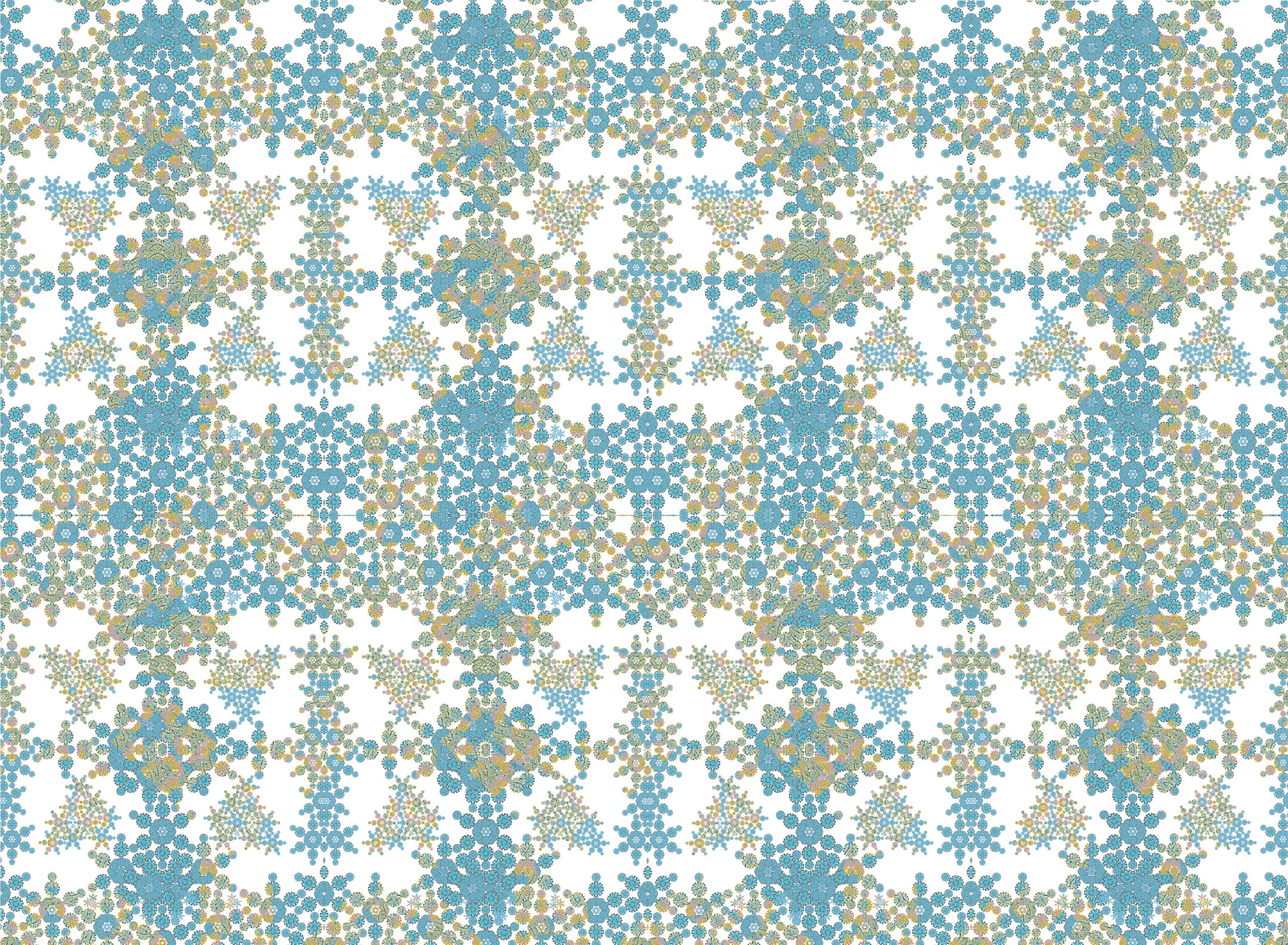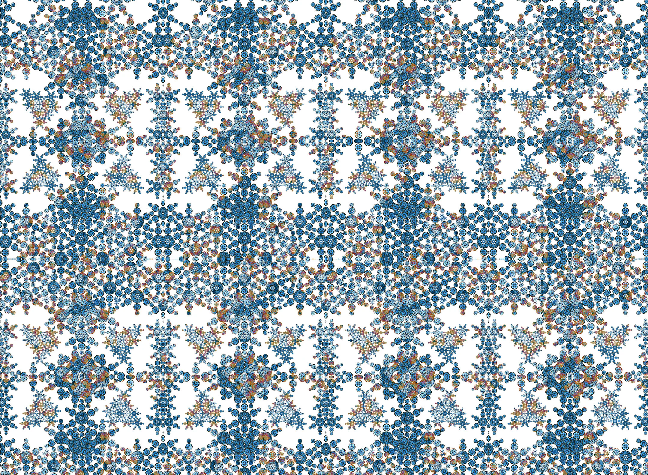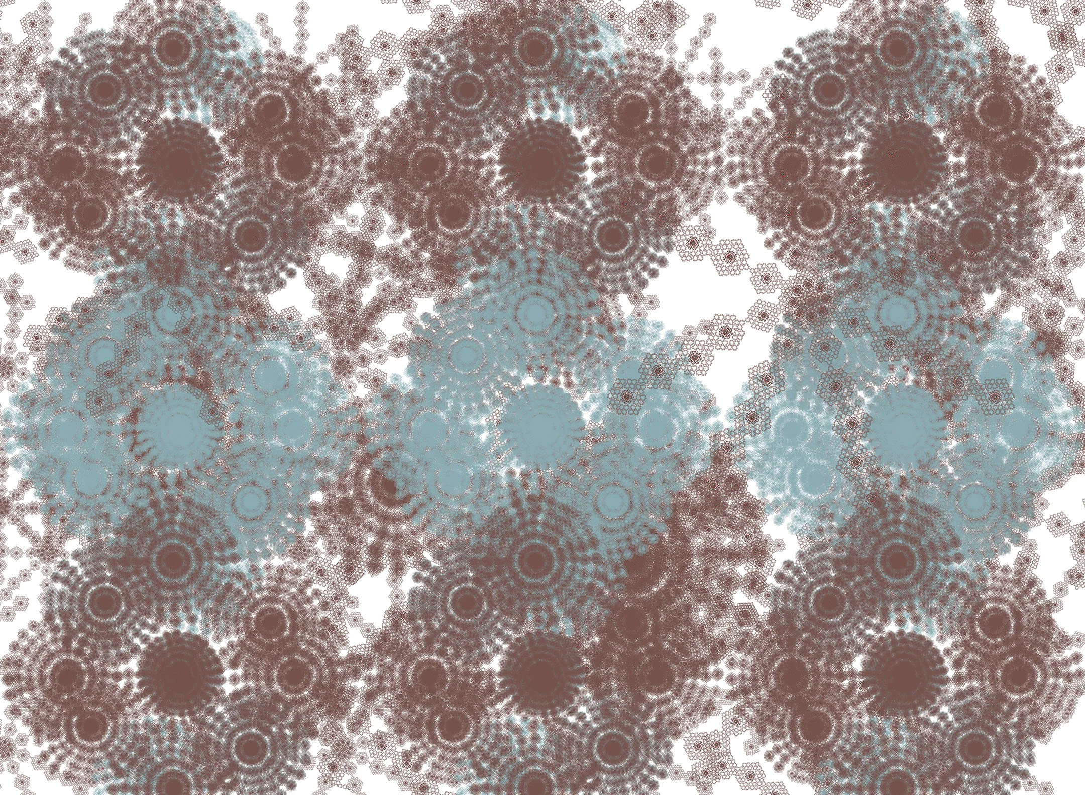 Staying within the medium of digital art, I've been pushing myself even further with this new approach. I am using the computer to make complex patterns from drawings, paintings, and photographs. There are multiple layers with varying degrees of transparency. Sometimes I cut and paste sections into random places on the image or I delete sections altogether. My process has become very collage based and I like to recycle old works into new ones. My practice continues to surprise me and it is in a constant state of transformation and development.