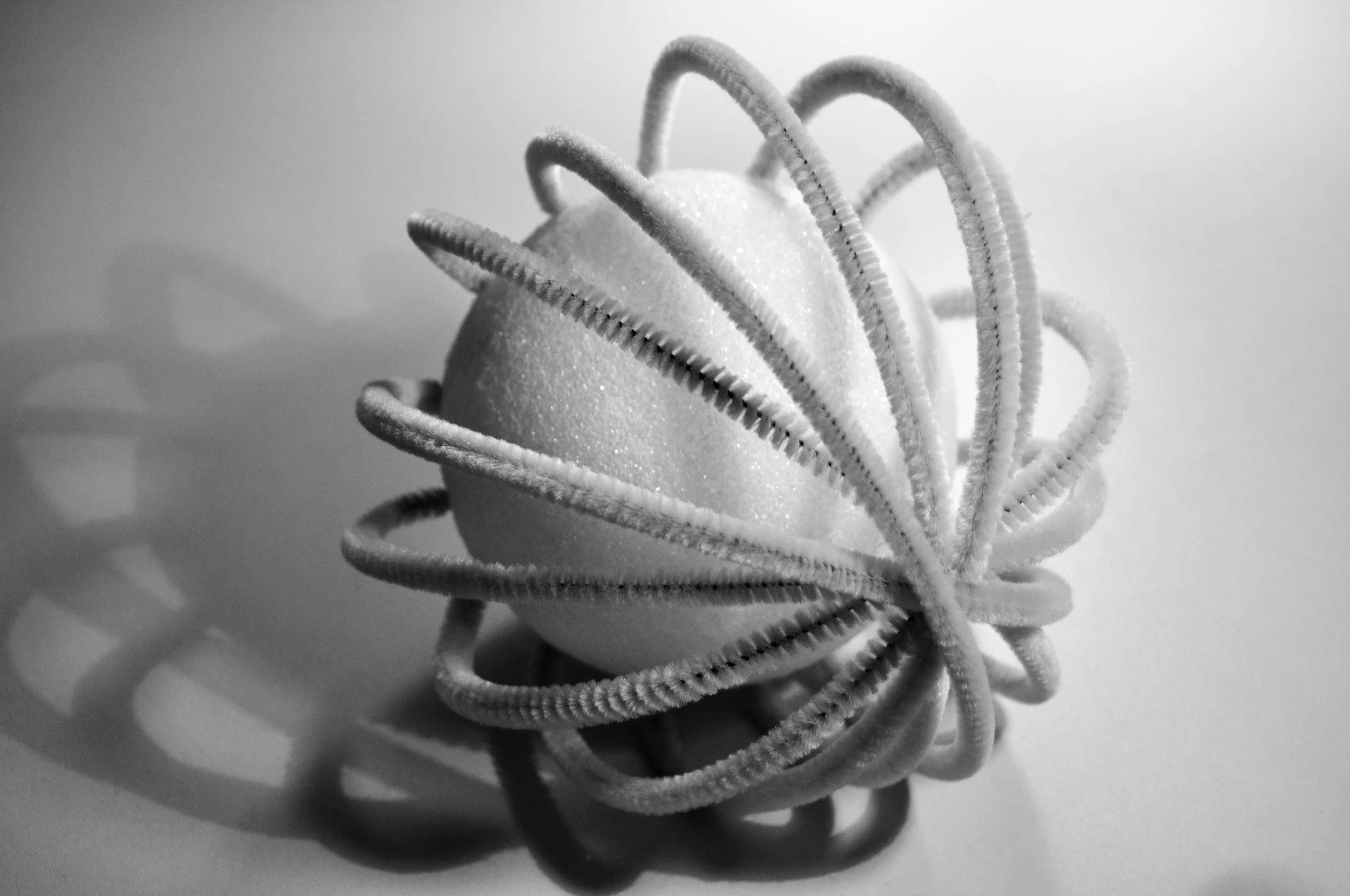 This photograph is of an object I created for my Print Media class in 2013. The sculpture was created with a styrofoam ball and pipe cleaners. I also used this image to create several patterns.